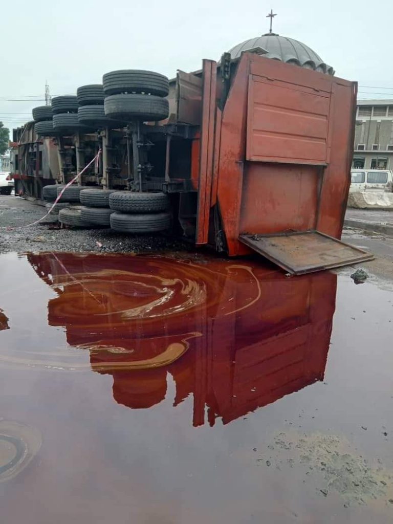 Our correspondent, who visited the scene, observed as emergency management workers brought a towing vehicle to take away the fallen tanker from the road.